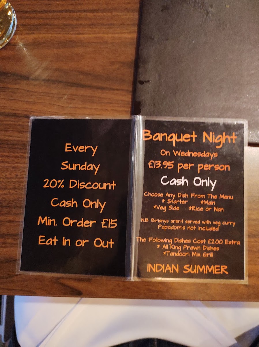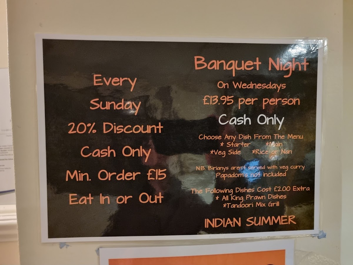 Expect efficient service from friendly staff, who ensure every visit is a memorable one. Whether you're dining in or ordering takeaway, the experience is enhanced by a good selection of drinks, including refreshing Cobra and fine red wine. Popular among locals and visitors alike, Indian Summer is a testament to outstanding value, with full meals for two often under £38. With consistently positive reviews emphasizing the quality and service, it’s a must-visit for curry lovers seeking a satisfying meal experience.